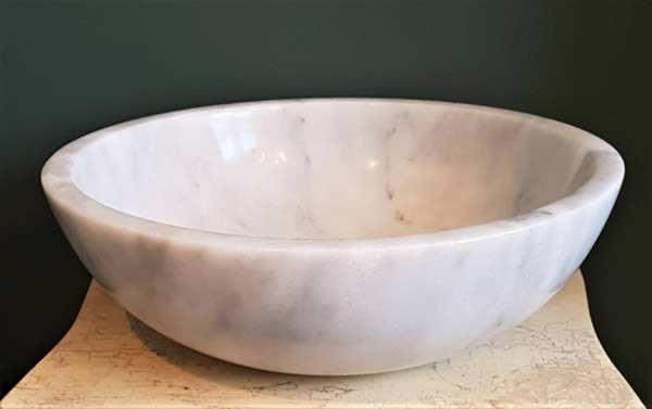 This small yet perfectly formed white marble wash basin will add elegance to any bathroom. Note: this particular item is now sold, but can be re-ordered as a custom-made product. Please contact us for further details.